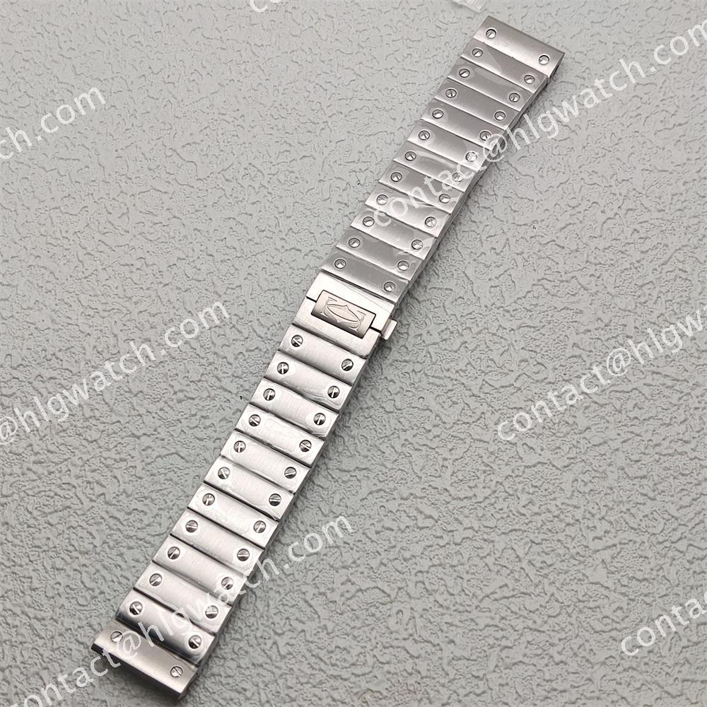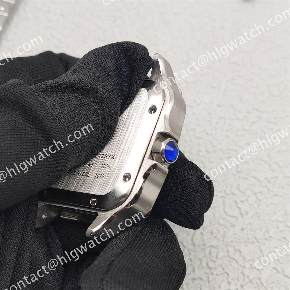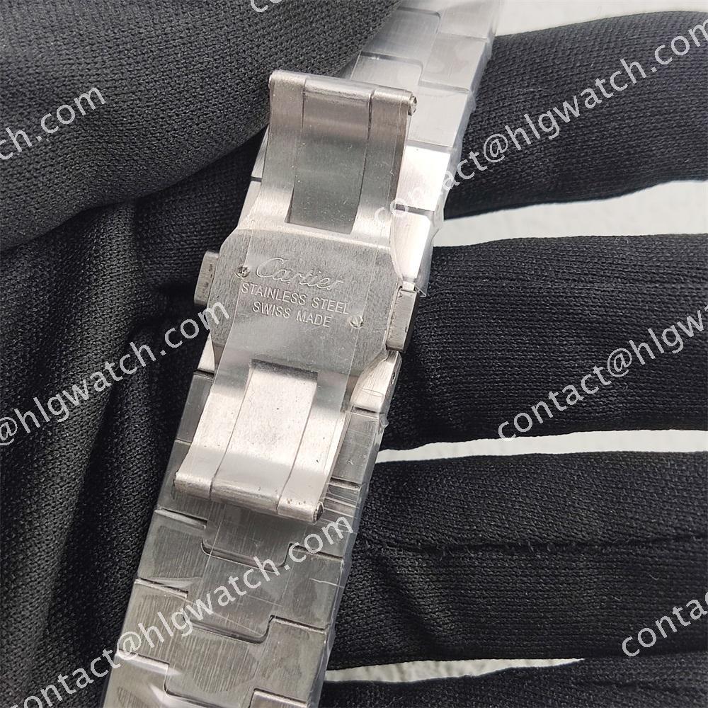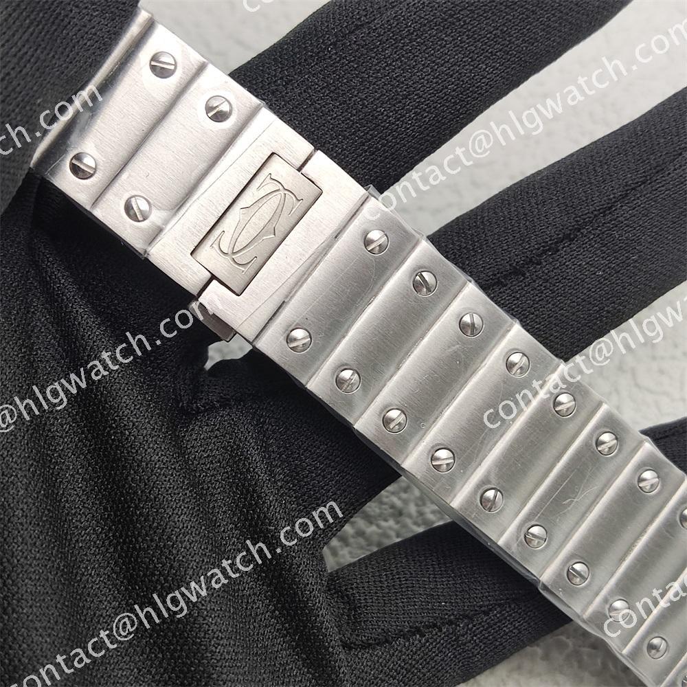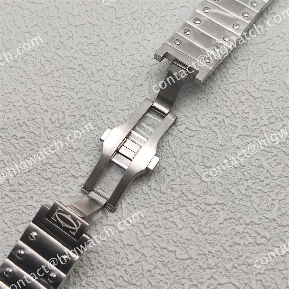 The case of the square-shaped Santos watch is made of all steel