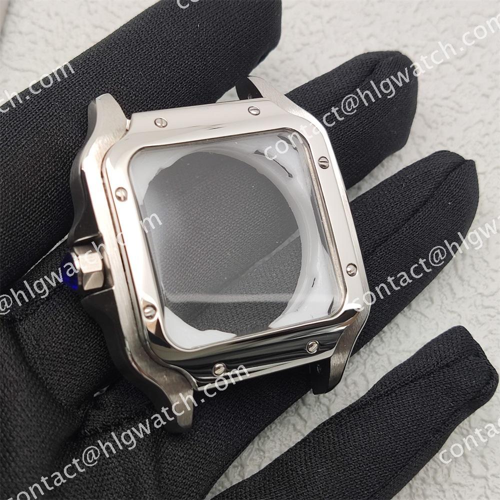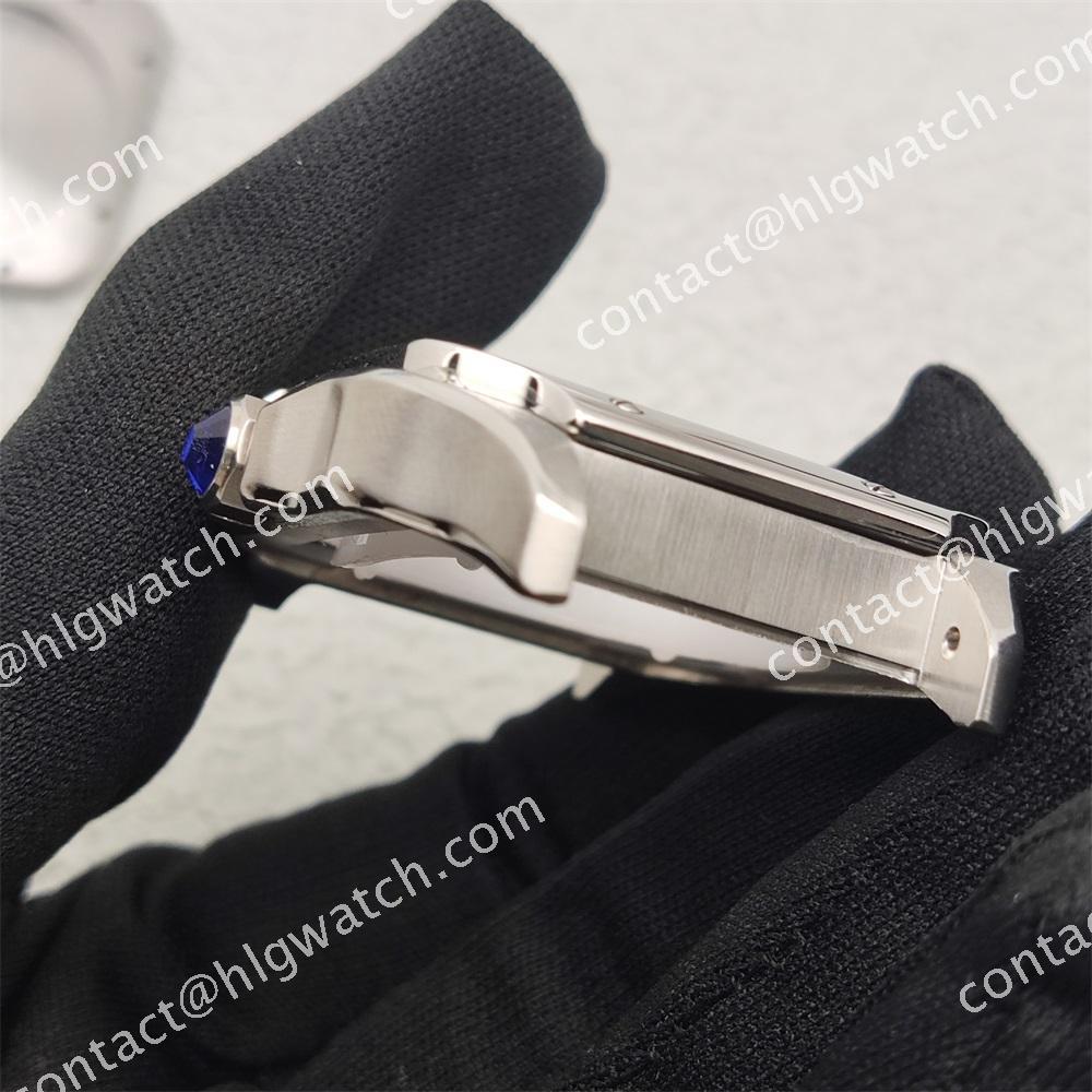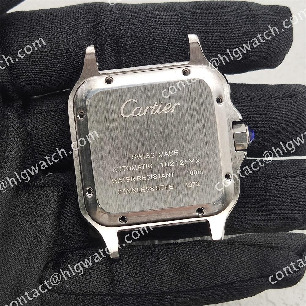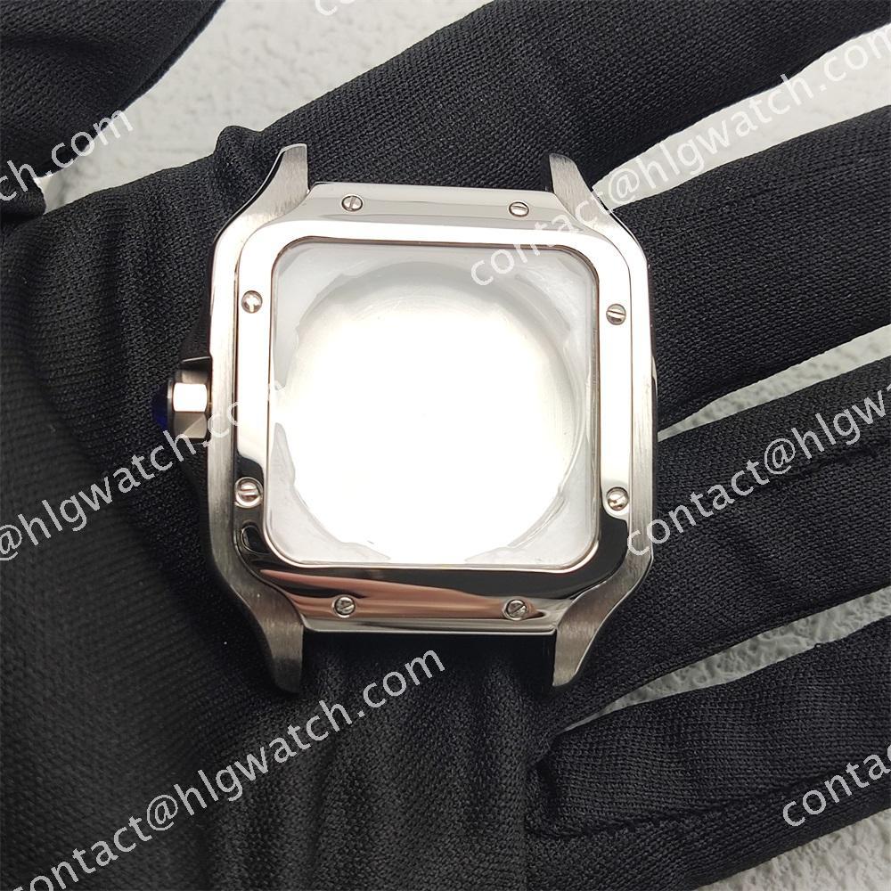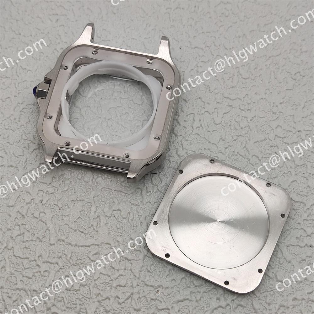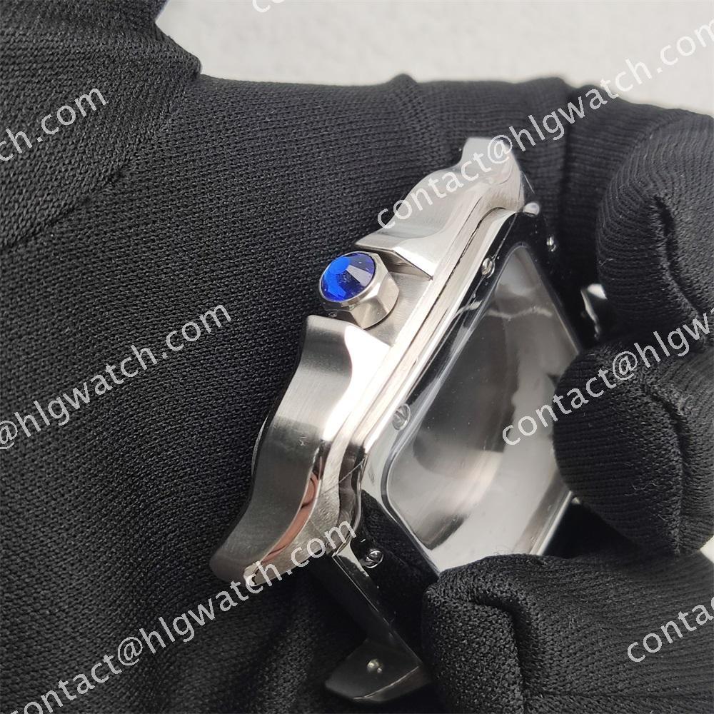 The case of the square-shaped Santos watch is made of all steel